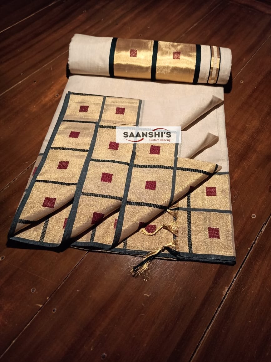 Please note that, you can purchase it as a family combo with customised kurta size and handloom mundu by reaching out to our whatsapp number. You can request for blouse stitching as well via whatsapp.