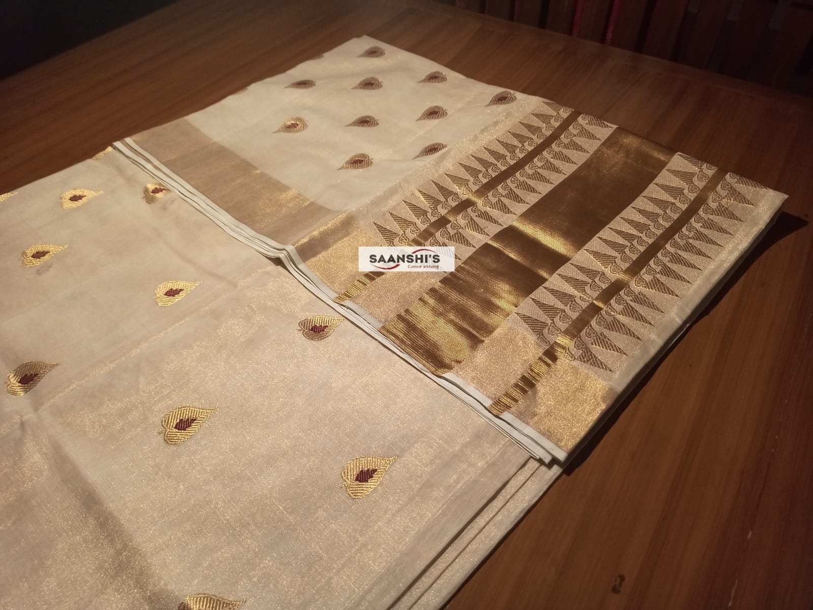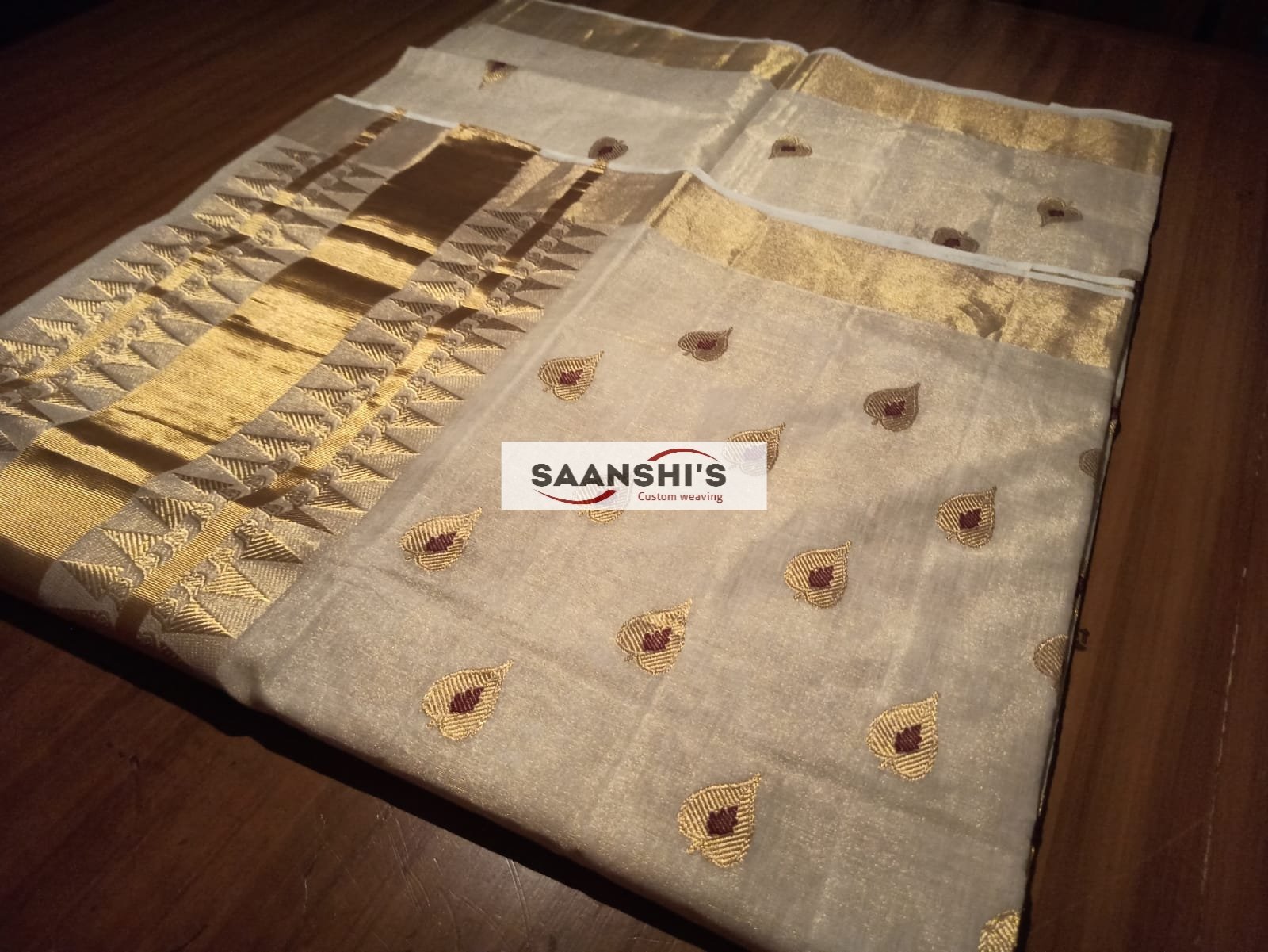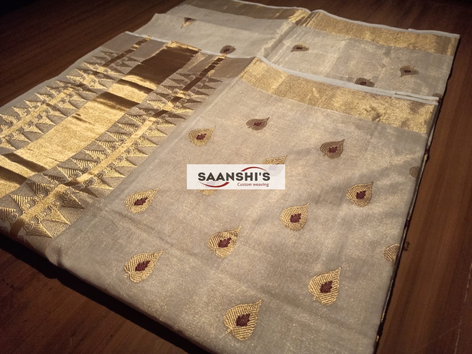 Embrace tradition with the ILA featuring a unique and special weave crafted from pure tissue. This saree is defined by its sophisticated leaf design and is breezy light to wear.