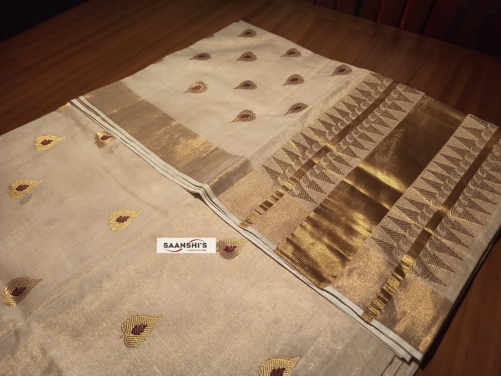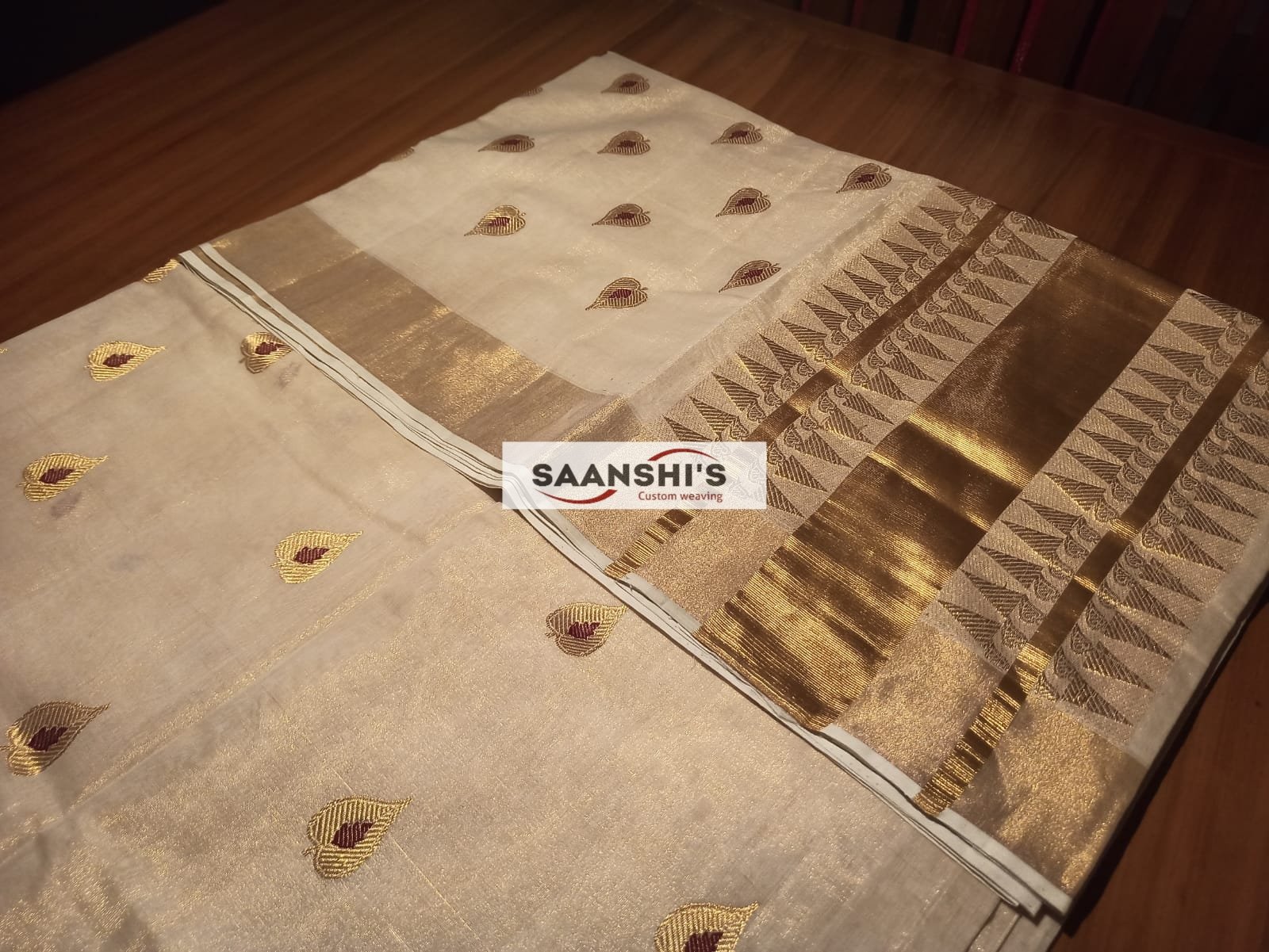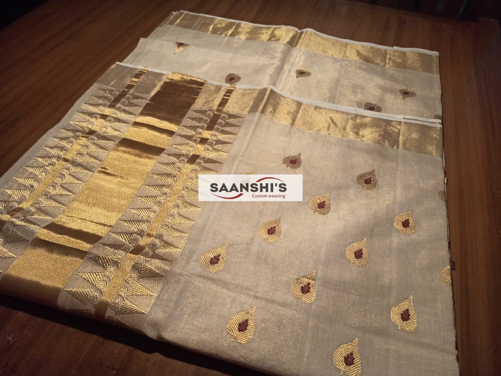 Embrace tradition with the ILA featuring a unique and special weave crafted from pure tissue. This saree is defined by its sophisticated leaf design and is breezy light to wear.