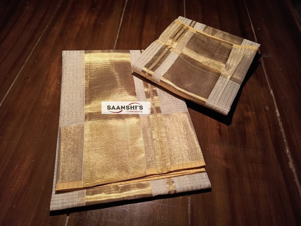 Pure Handloom Tissue set mund with weaved with micro check. .
