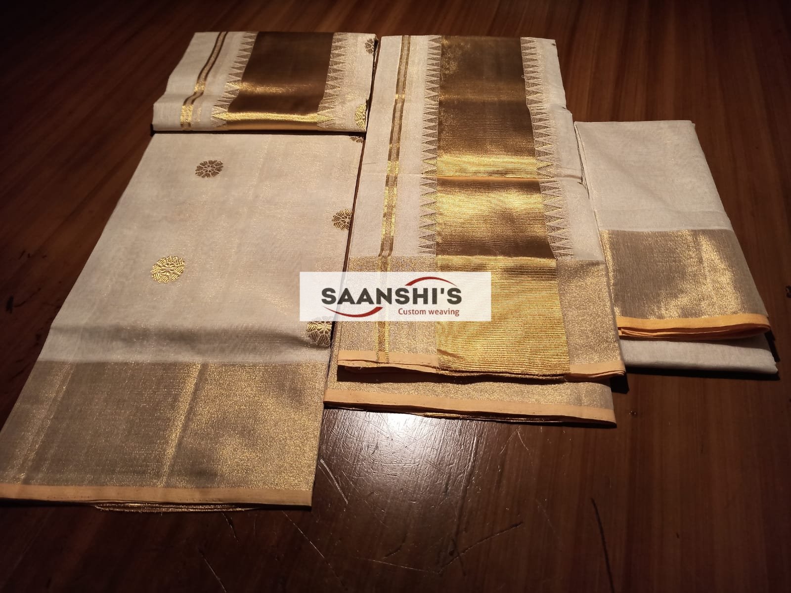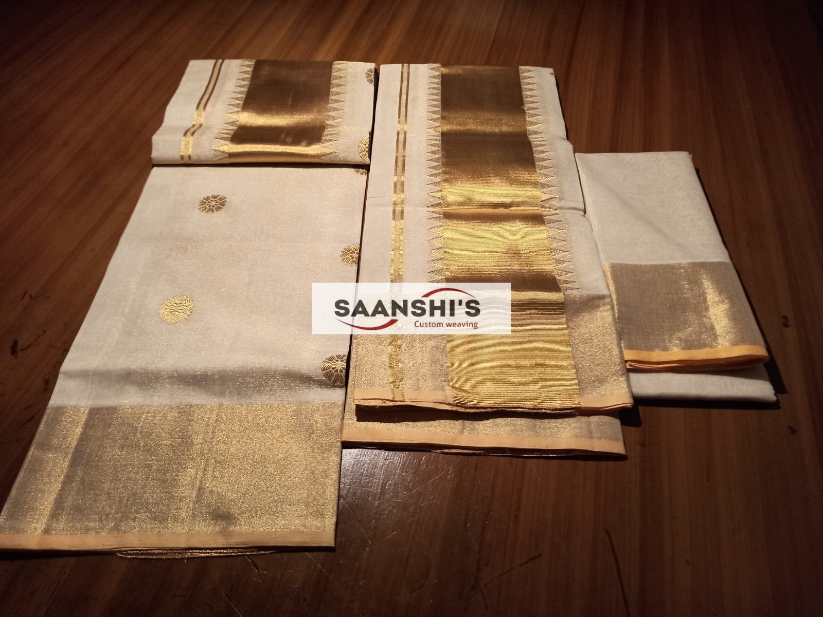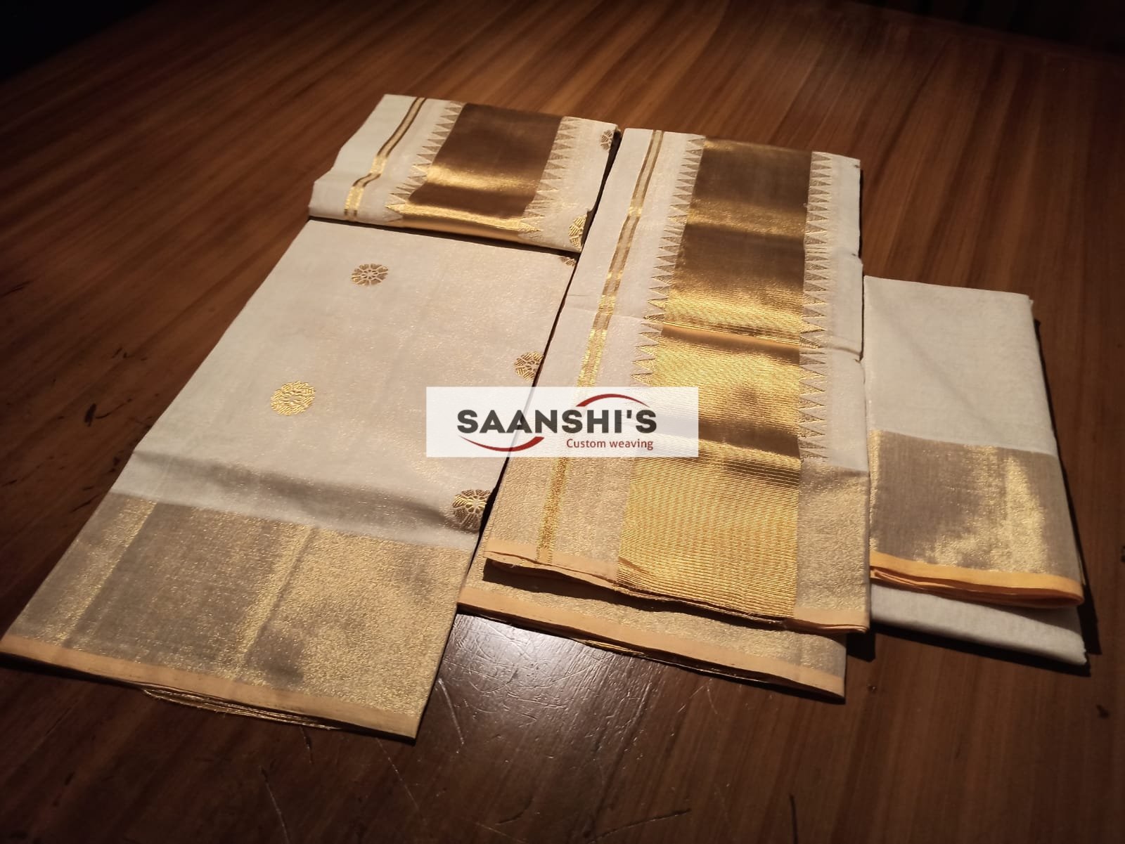 This is a premium set mund with a 2.8-metre length of mel mund, which gives it enough length to wear and is carefully woven by our master weavers of Kerala.
