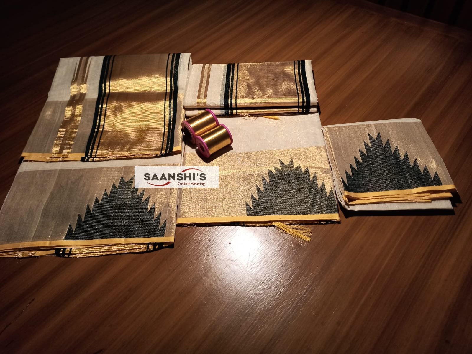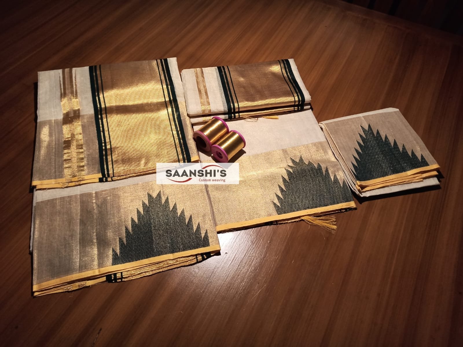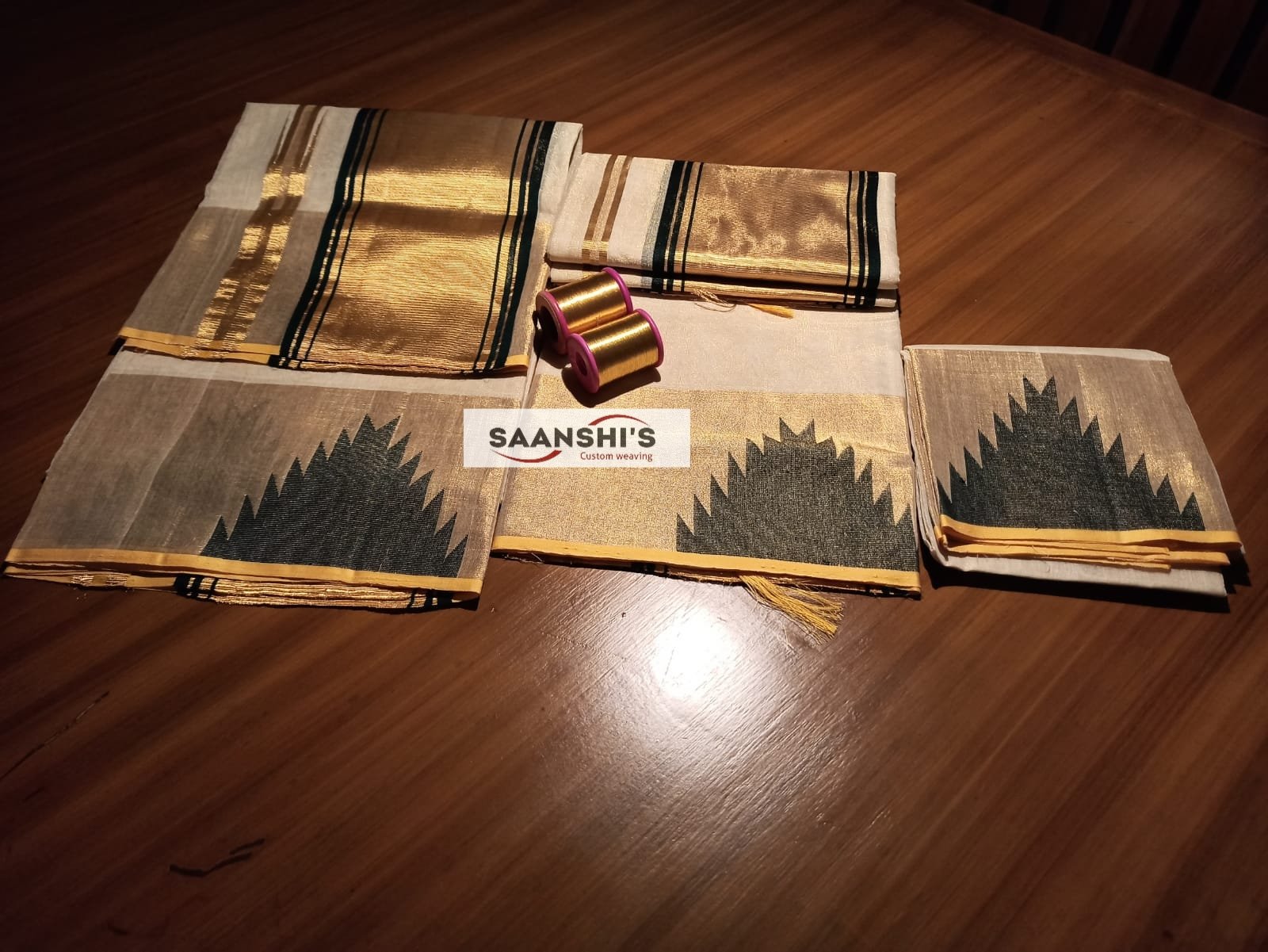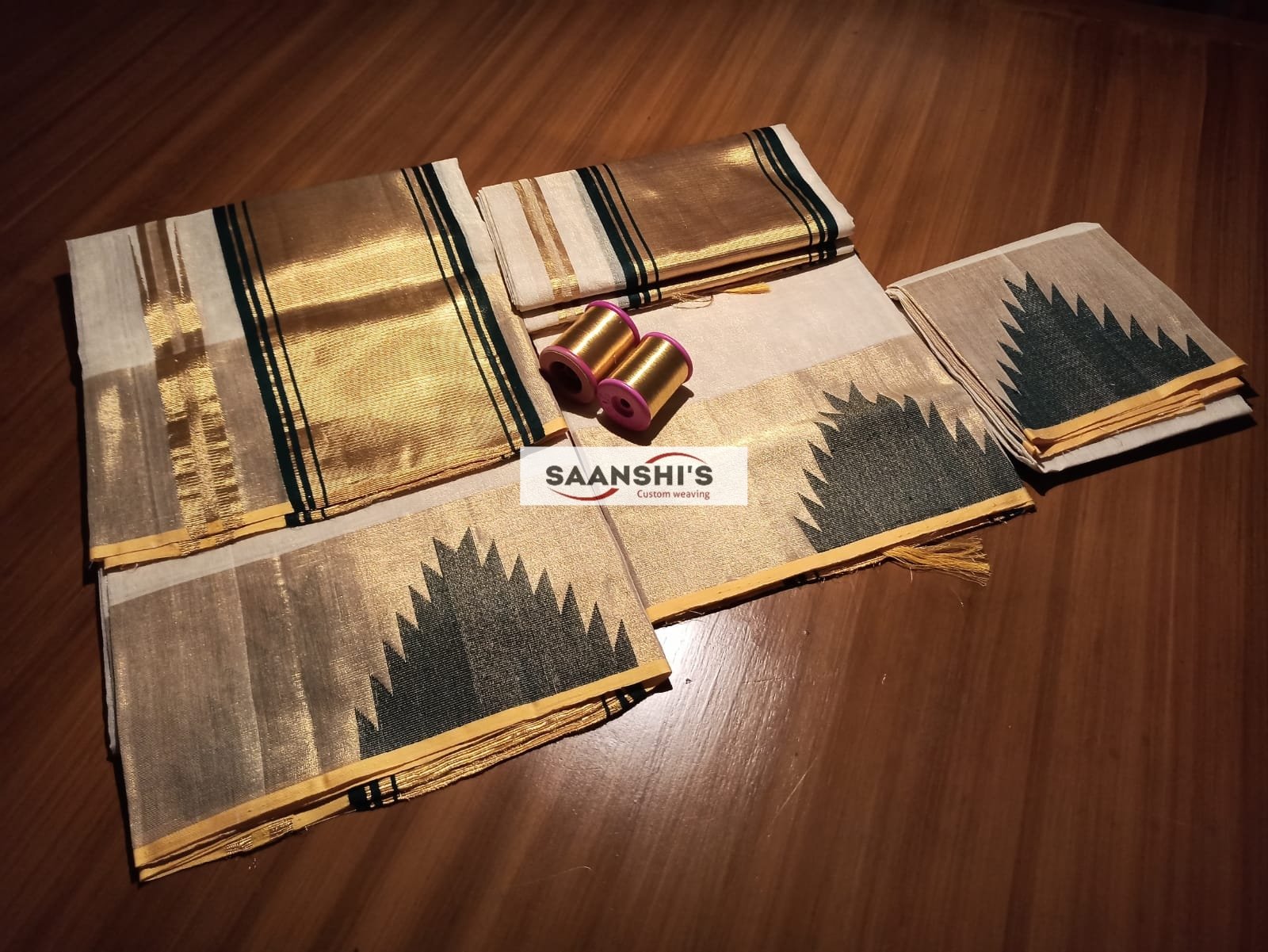 Be the first to review “Varnam – PURE HANDLOOM TISSUE TEMPLE BORDER SET Mund -Bottle green”