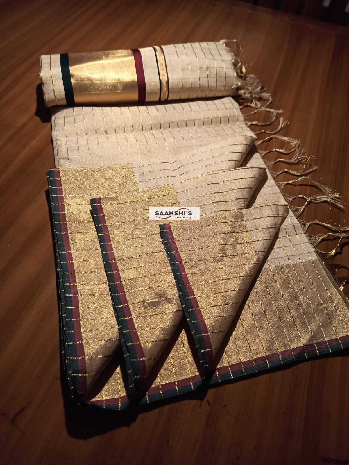 RUMI- FULL JARI WEAVED – TISSUE CHECK SAREE 4 inch