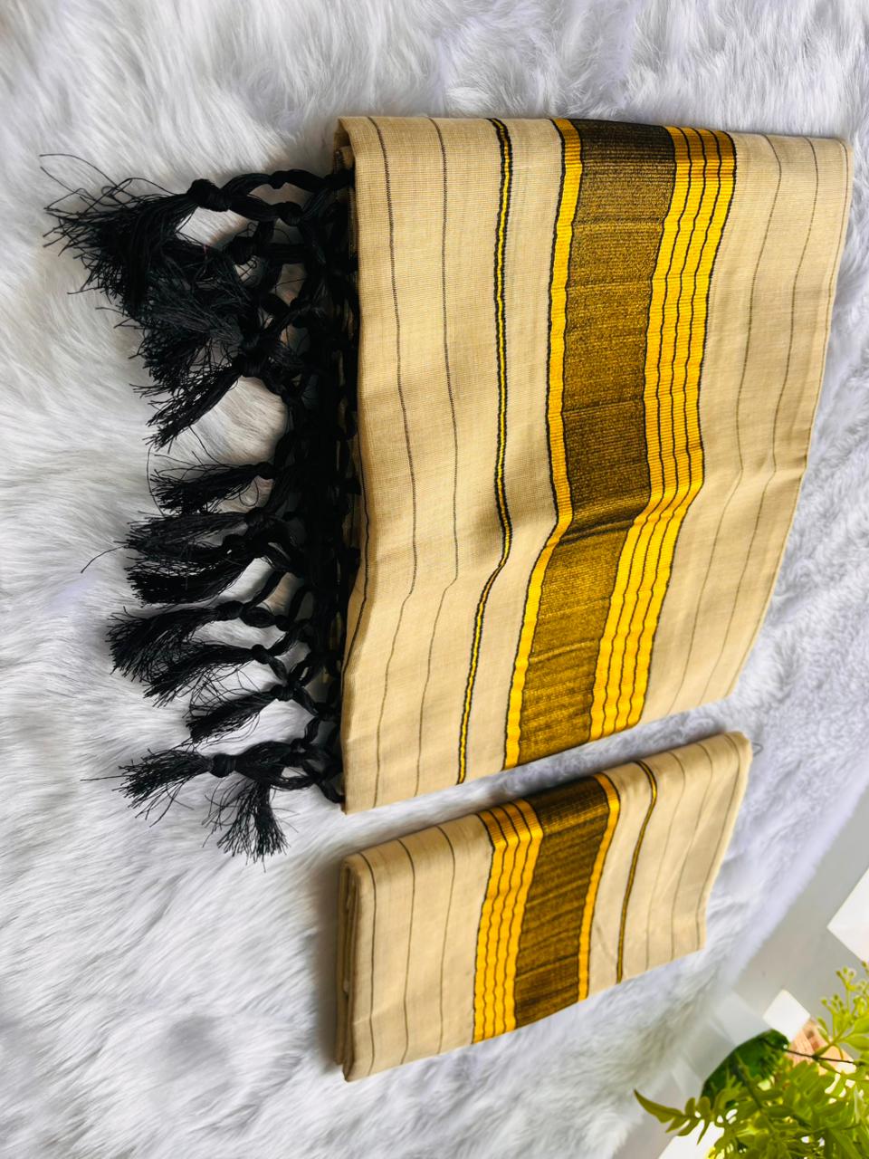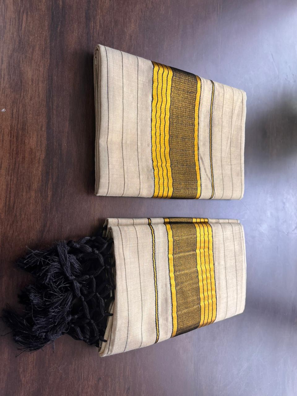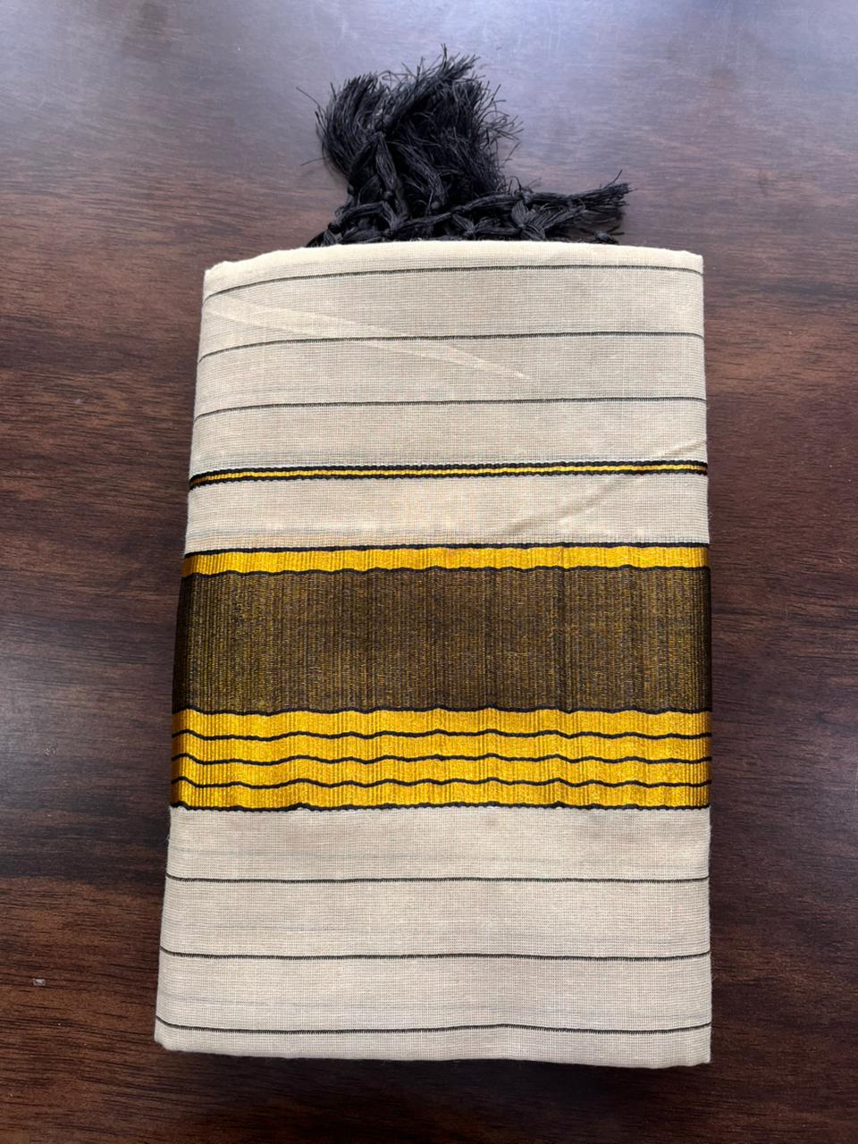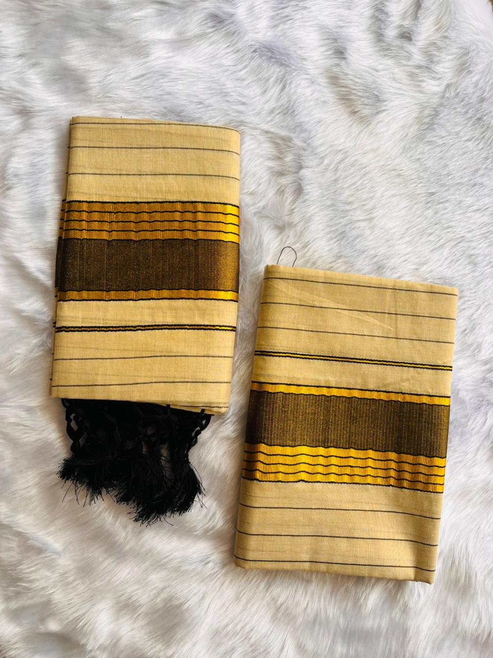 VY SET MUND-30221 | Cream & Coffee Brown with Golden Border
